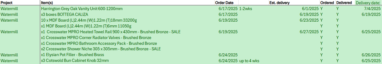 A full house renovation often involves hundreds of items being ordered—from taps and tiles to lighting and joinery. A Project Manager oversees this complex ordering process, ensuring: